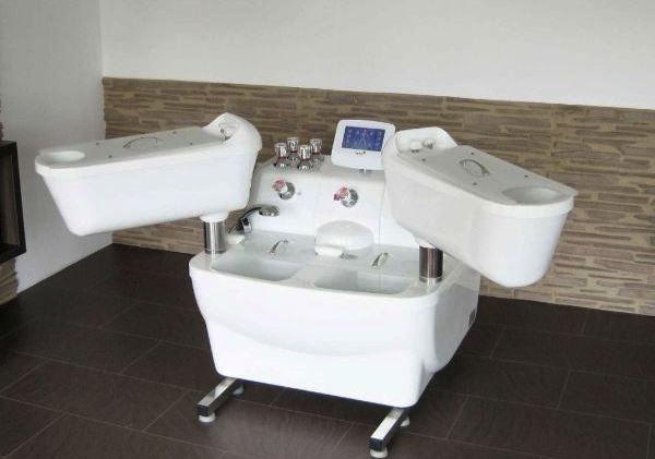 Το συμπαγές λουτρό τεσσάρων κάδων με εξοικονόμηση του νερού παρέχει λύσεις για διάφορες υδροθεραπευτικές θεραπείες όπως ηλεκτρογαλβανικά μερικά λουτρά, λουτρά αντίθεσης και λουτρά βραχίονα και ποδιών για αύξηση της θερμοκρασίας. Η ηλεκτροθεραπευτική και η εναλλασσόμενη θεραπεία παράγουν ευεργετικά θεραπευτικά αποτελέσματα στο νευρικό και στο κυκλοφορικό σύστημα. Όλες οι θεραπείες μπορούν να πραγματοποιηθούν για κάθε κάδο ανεξάρτητα ή με συνδυασμό.