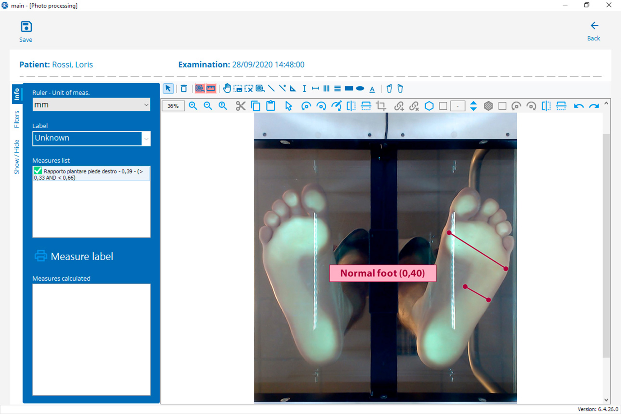 Είναι ένα αυθεντικό ποδοσκόπιο με μία ενσωματωμένη συσκευή λήψης εικόνας για την λειτουργία του ποδοσκοπίου με ιδιότητες μέτρησης. Επομένως, είναι δυνατή η απόκτηση, η αποθήκευση και η σύγκριση εικόνων του υπό εξέταση ατόμου σε διαφορετικές στιγμές. Οι μετρήσεις μπορούν να πραγματοποιηθούν σε κάθε φωτογραφία. Είναι δυνατή η εκτέλεση μετρήσεων σε κάθε ληφθείσα εικόνα και μπορούν να συσχετιστούν με μια ετικέτα αναγνώρισης. Οι μετρήσεις μπορούν να αποθηκευτούν στην ίδια την εικόνα, να ανακληθούν σε μια δεύτερη στιγμή, να εμφανιστούν σε μια αναφορά ασθενούς ή ακόμη και να εξαχθούν για επεξεργασία.